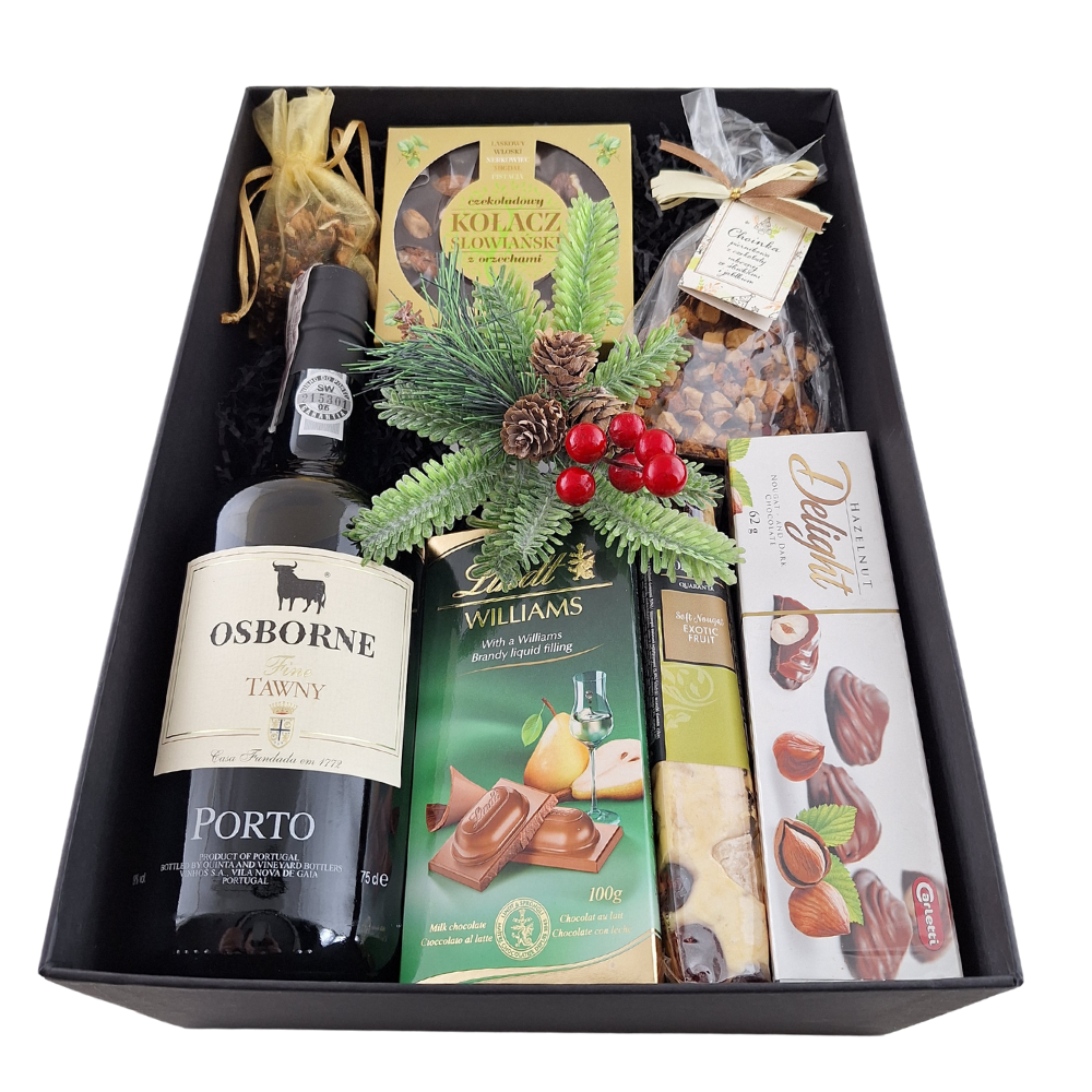 Całość jest zapakowana w eleganckie świąteczne pudełko, przewiązane wstążką, co sprawia, że zestaw jest gotowy do wręczenia. Prezent dla miłośnika porto to nie tylko wyjątkowy zestaw smaków, ale także sposób na spędzenie niezapomnianych chwil w gronie najbliższych.