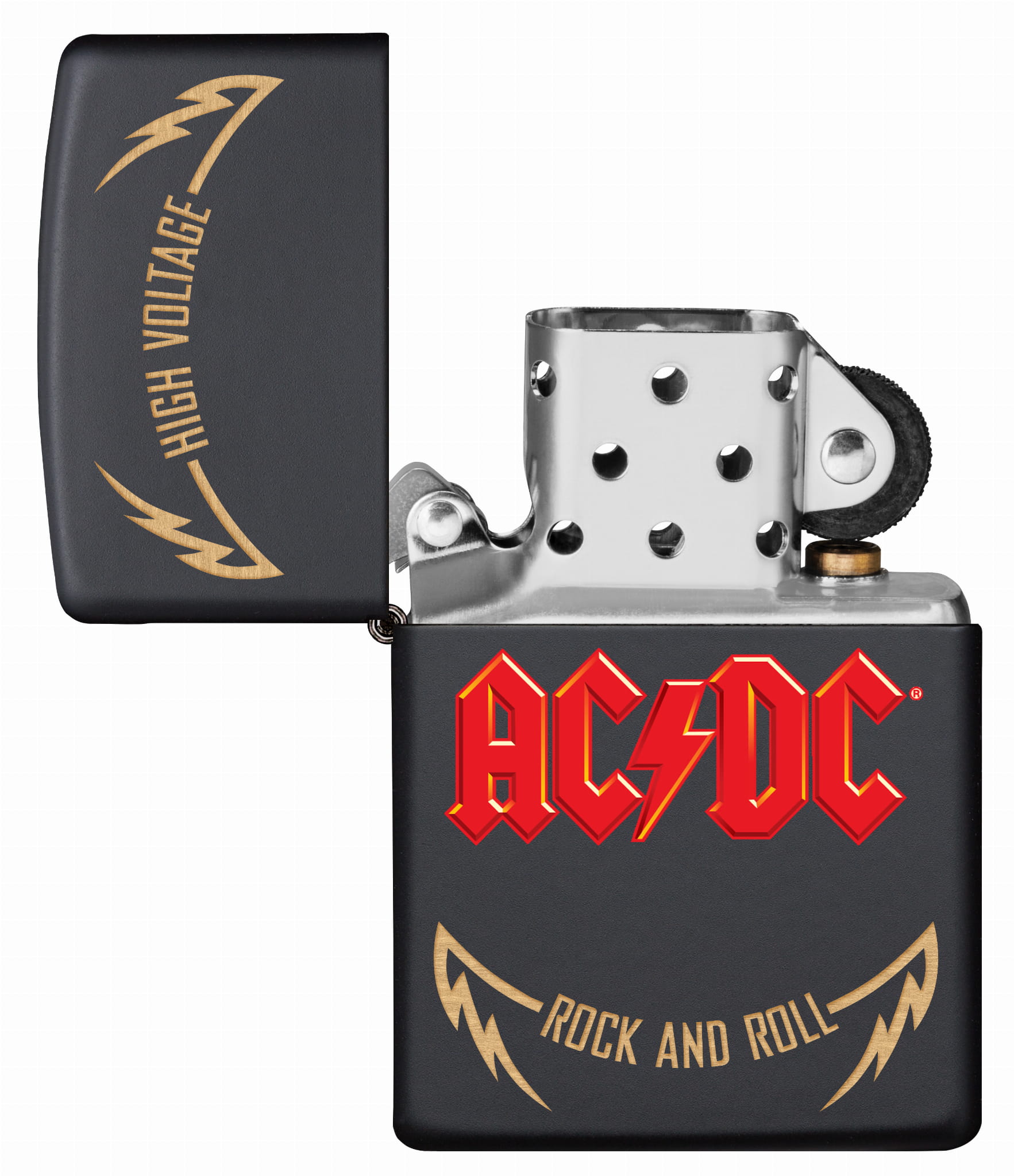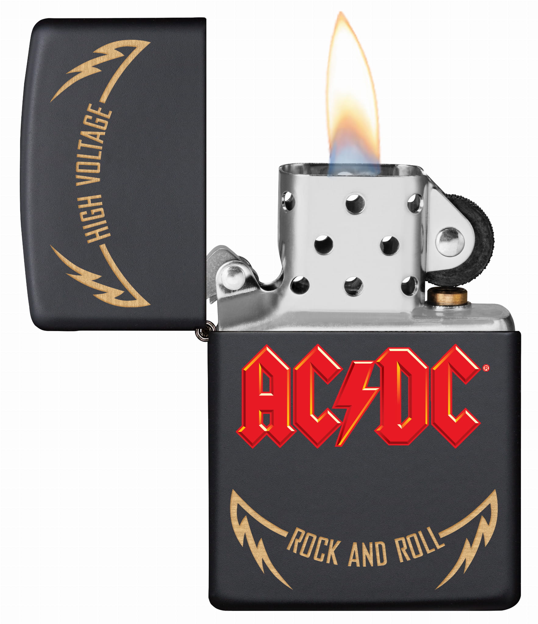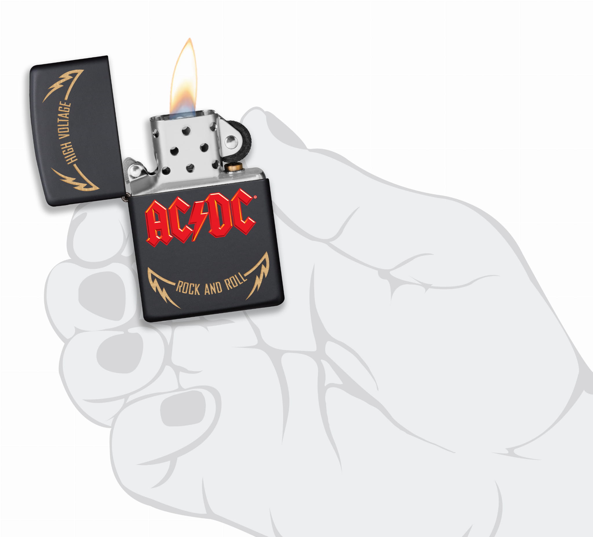 Benzynowa zapalniczka Zippo AC/DC High Voltage 60005609 to energetyczny hołd dla jednej z najbardziej kultowych kapel rockowych wszech czasów. Na matowej czarnej bazie Black Matte umieszczono grafikę z logo zespołu AC/DC oraz nazwą ich debiutanckiego albumu „High Voltage” z 1976 roku – płyty, która zapoczątkowała erę niepowstrzymanego rock’n’rolla.