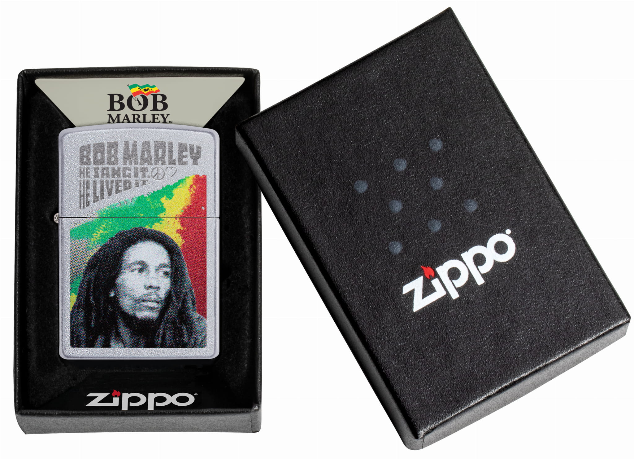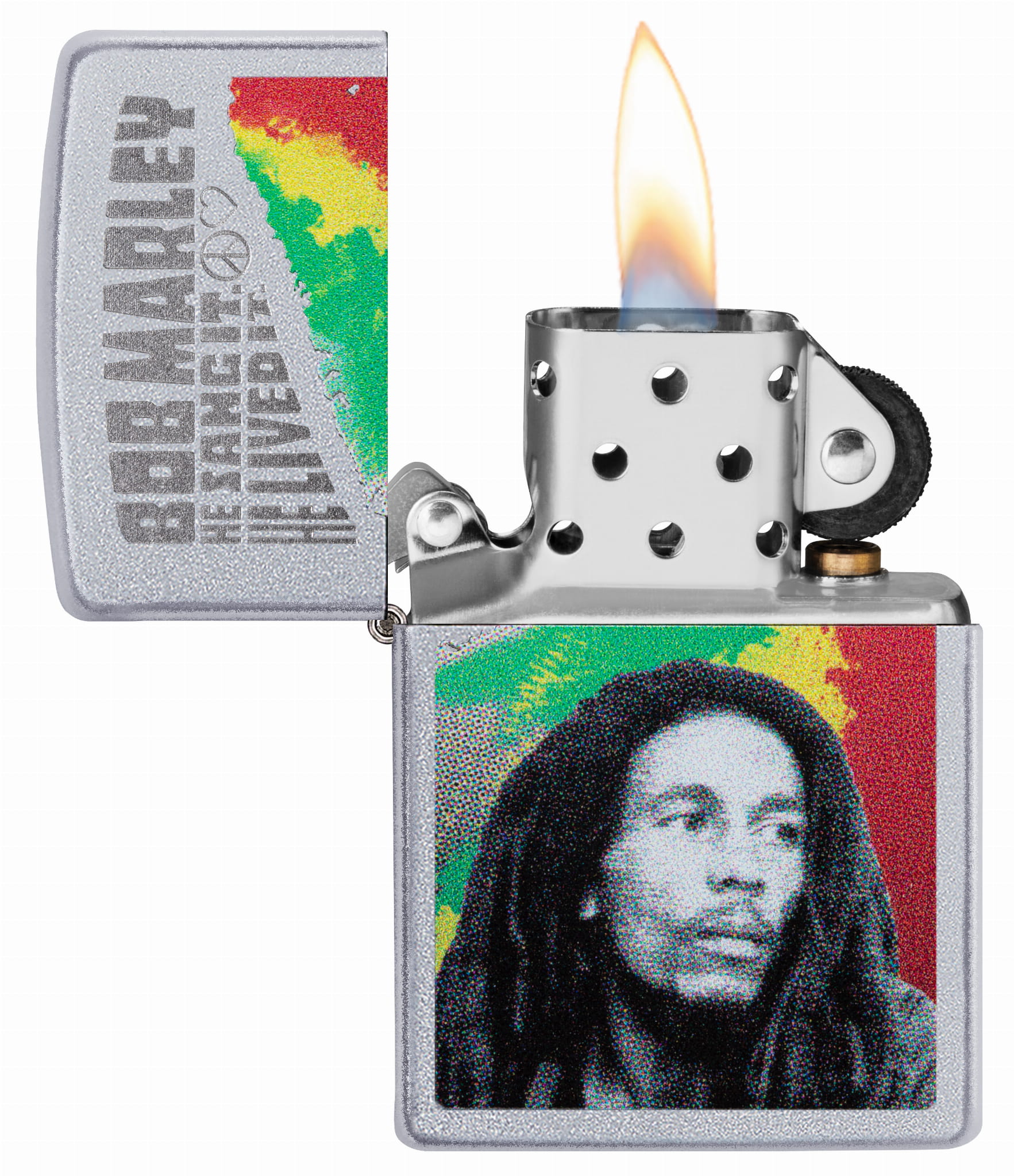 Zapalniczka Zippo Bob Marley 60005535 to wyjątkowy hołd dla legendy muzyki reggae, jamajskiego wokalisty, który poruszył serca milionów. Na bazie Satin Chrome umieszczono kolorowy nadruk z wizerunkiem Boba Marleya oraz charakterystycznymi pasami w barwach rastafari. Całość uzupełnia laserowo grawerowany napis w górnej części – subtelny, ale wyrazisty detal, który nadaje zapalniczce unikalnego charakteru.