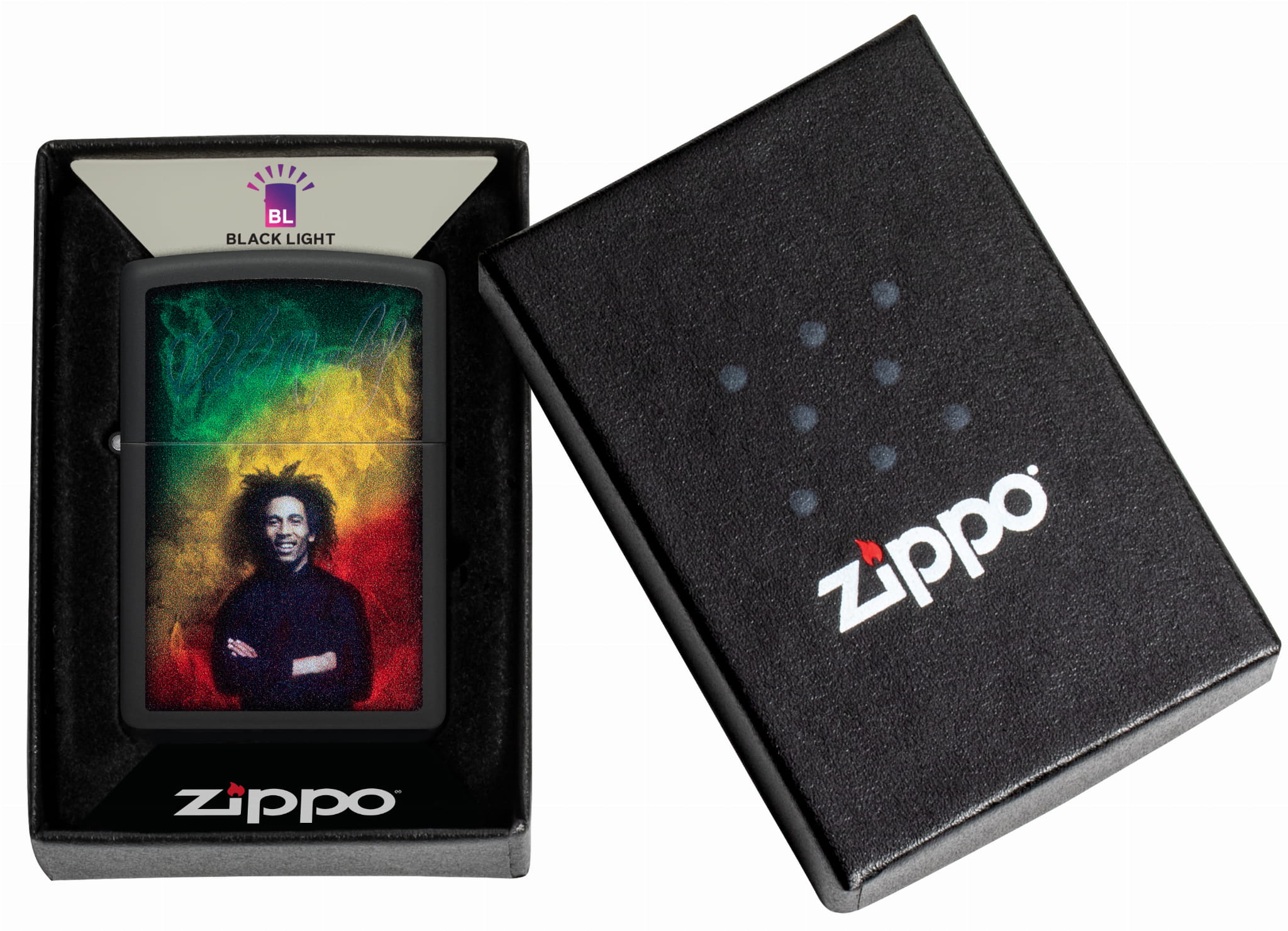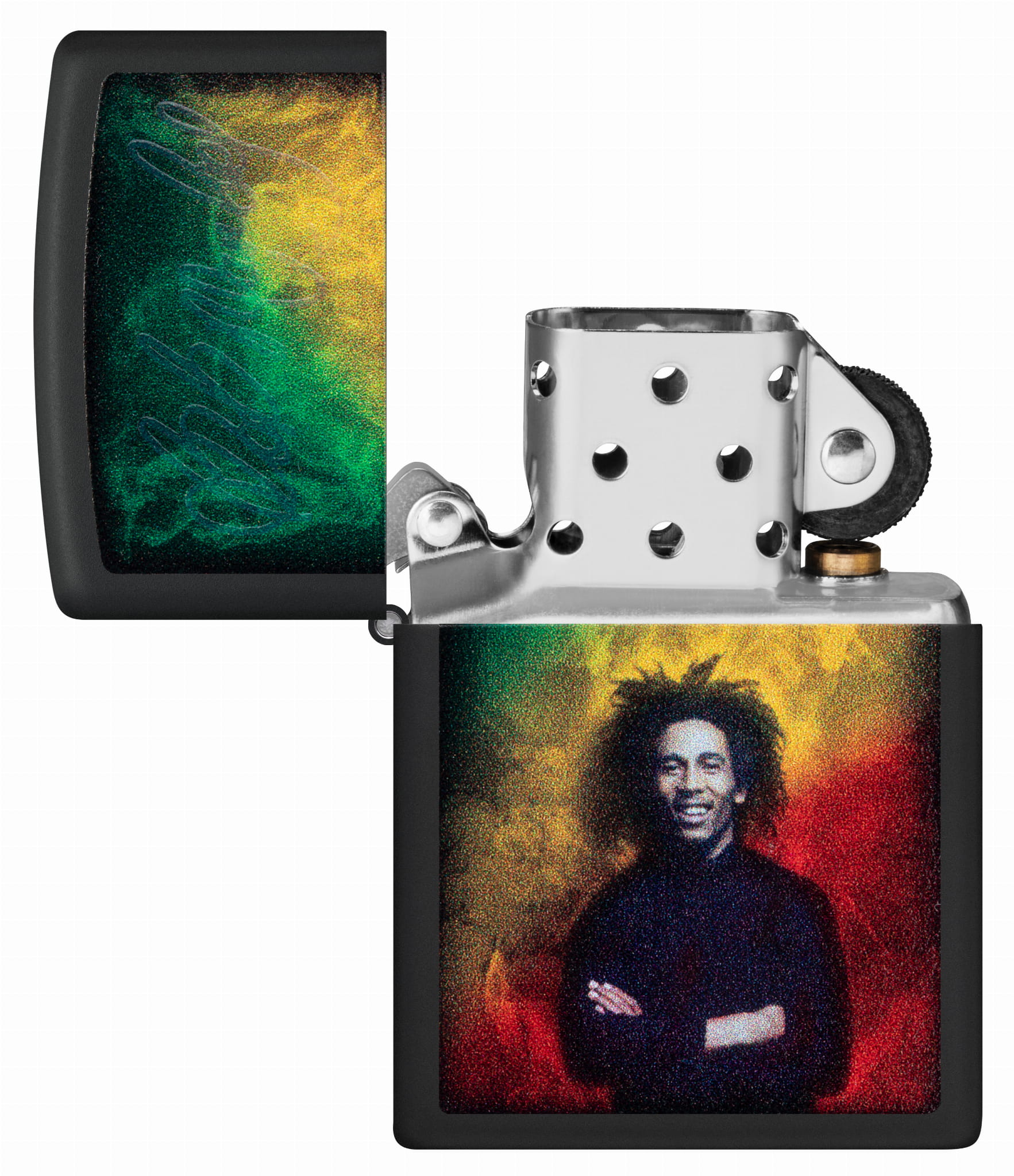 Zapalniczka Zippo Bob Marley Design 60006769 to wyjątkowy model z kolekcji poświęconej legendzie muzyki reggae. Na klasycznej bazie Street Chrome umieszczono kolorowy nadruk przedstawiający Boba Marleya – ikonę pokoju, wolności i muzyki, która porusza serca na całym świecie. Design łączy w sobie jamajską energię, styl rastafari i ponadczasowy przekaz artysty.