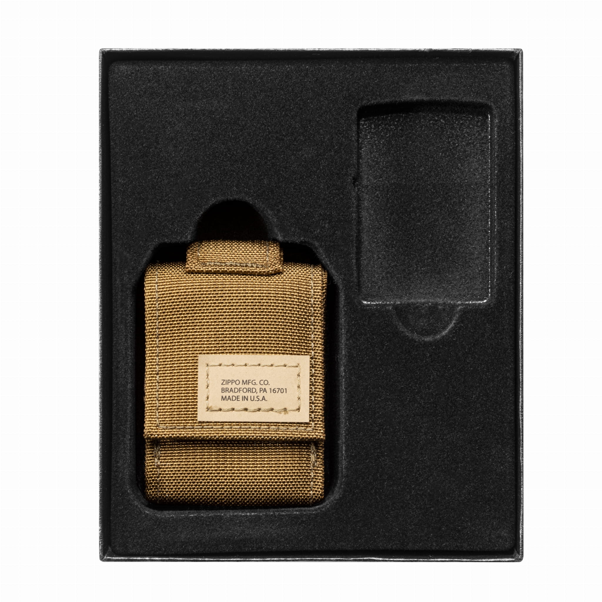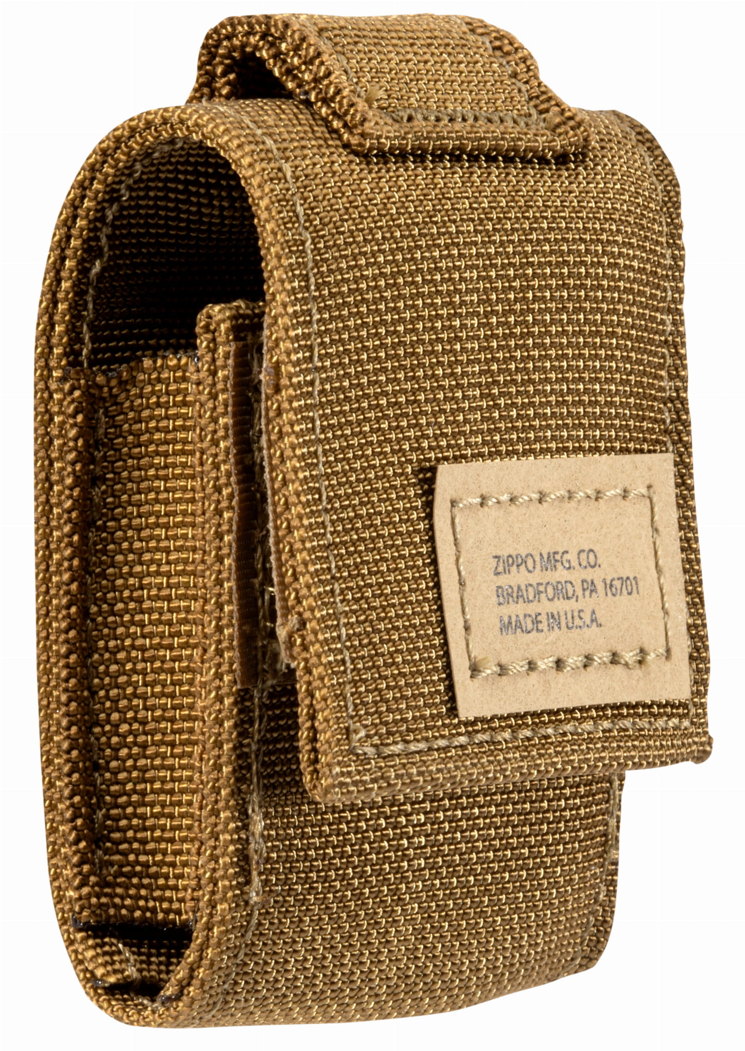 Etui wykonano z wytrzymałej nylonowej taśmy zgodnej ze specyfikacją Mil Spec Style 17337. Posiada zapięcie na rzep, które wytrzymuje ponad 20 000 operacji, uchwyt na karabińczyk oraz system mocowania MOLLE, kompatybilny z PALS. Dzięki temu można je przypiąć do plecaka, pasa lub torby, idealne na wyprawy, biwak czy codzienne użytkowanie. To zestaw, który sprawdzi się jako prezent dla mężczyzny, fana survivalu, militariów lub po prostu kogoś, kto ceni amerykańską jakość i legendarny styl Zippo.